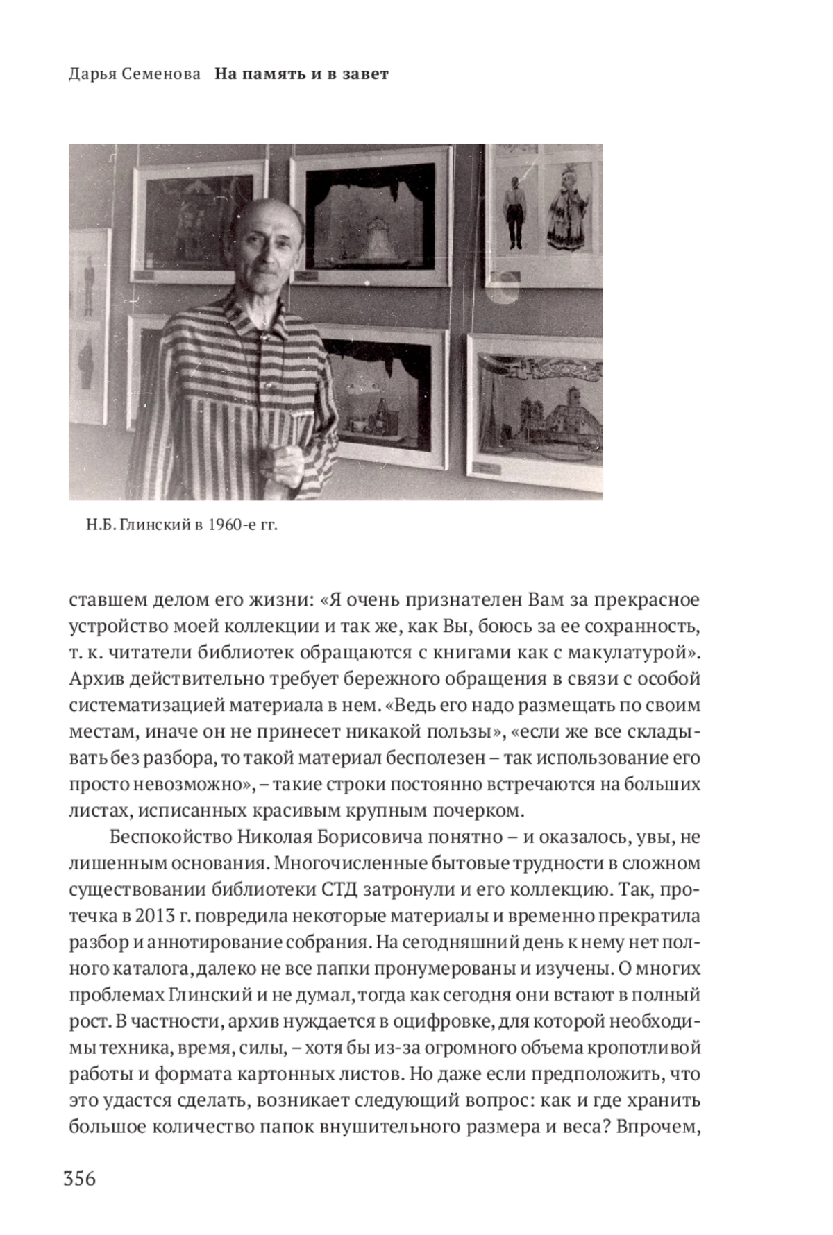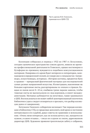 Центральная научная библиотека Союза театральных деятелей – особенная организация. Ее функции отнюдь не исчерпываются книжным хранением. Фонд формируют не только книги и периодические издания, но и личные архивы людей искусства. Среди них встречаются как имена первого ряда, так и другие – пусть они менее значительны, однако их собрания также представляют большой интерес для исследователей. Один из таких дарителей, передавший в ЦНБ в буквальном смысле труд своей жизни, – художник Николай Глинский. Долгие годы собирал он свою «Историю костюма, предметов быта и оружия», с которой сегодня может ознакомиться заинтересованный специалист.
