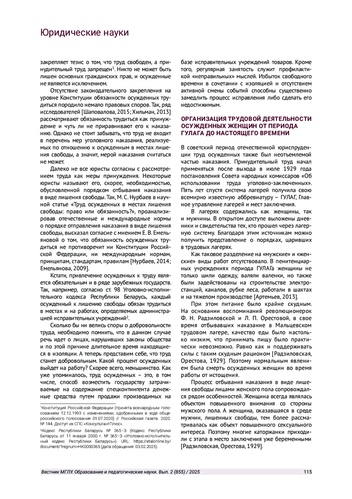 3. Нурбаев М. С. Труд осужденных в местах лишения свободы: право или обязанность? // Вестник Самарскового юридического института. 2014. № 2. С. 20-24. URL: https://cyberleninka.ru/article/n/trud-osuzhdennyh -v-mestah-lisheniya-svobody-pravo-ili-obyazannost (дата обращения: 03.02.2025).