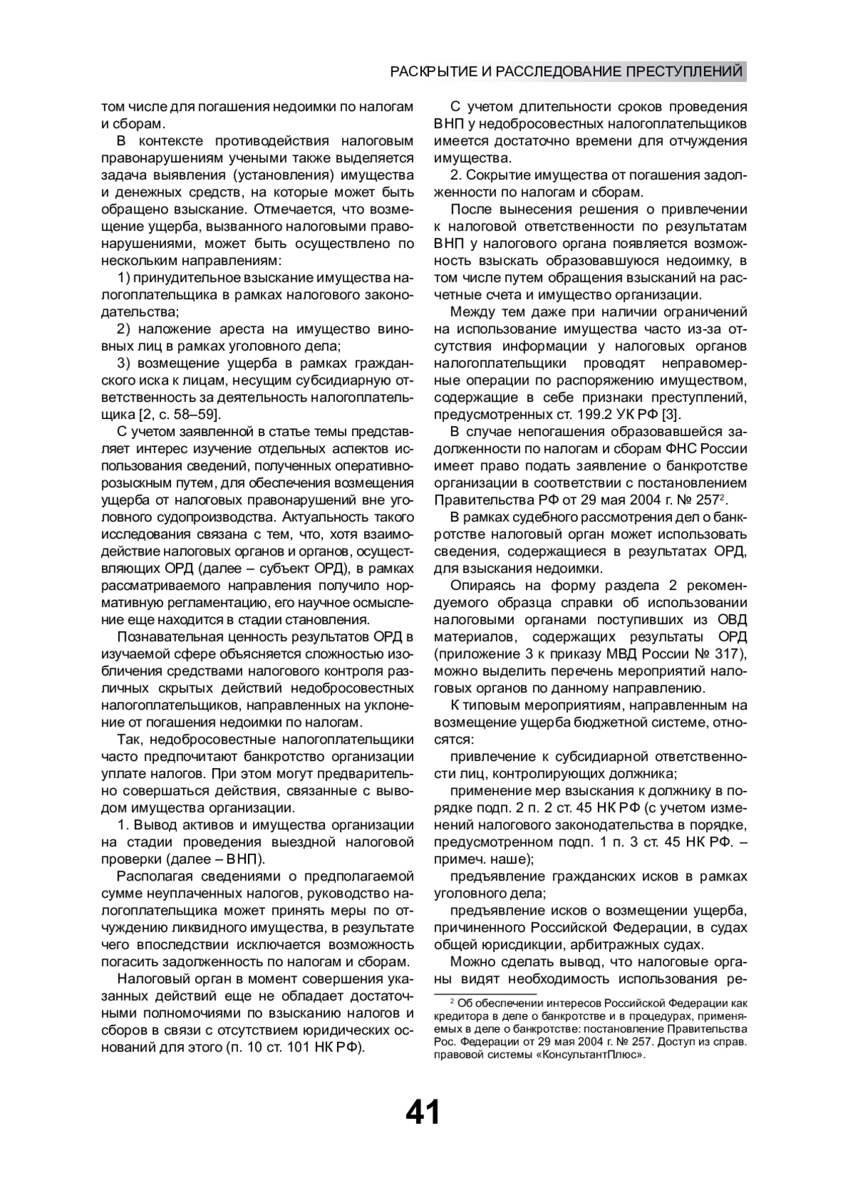 Статья: ОСОБЕННОСТИ ИСПОЛЬЗОВАНИЯ РЕЗУЛЬТАТОВ ОПЕРАТИВНО-РОЗЫСКНОЙ ДЕЯТЕЛЬНОСТИ ДЛЯ ПОГАШЕНИЯ ЗАДОЛЖЕННОСТИ ПО НАЛОГАМ И СБОРАМ ВНЕ УГОЛОВНО-ПРОЦЕССУАЛЬНЫХ ОТНОШЕНИЙ (2024)
