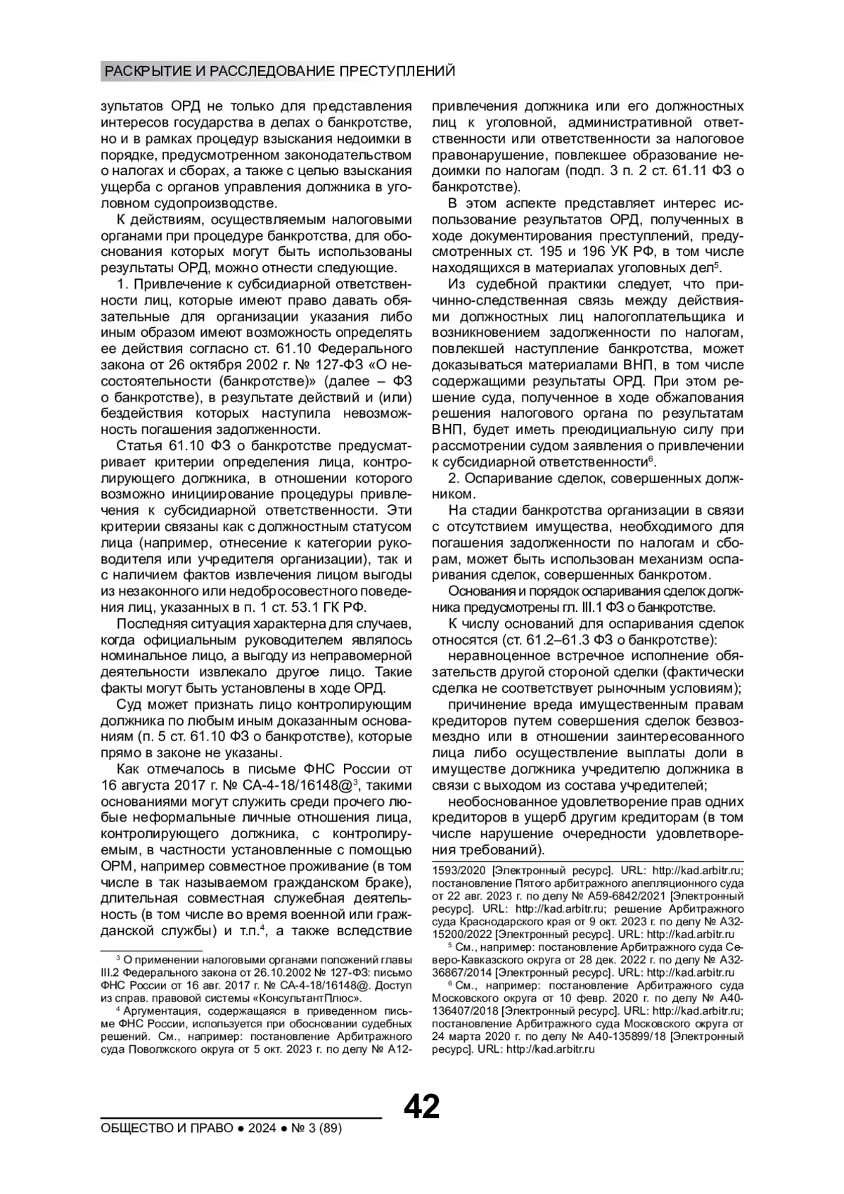 Ключевые фразы: оперативно-розыскная деятельность, результаты, задолженность по налогам, СУБСИДИАРНАЯ ОТВЕТСТВЕННОСТЬ, обжалование сделок, АРБИТРАЖНЫЙ ПРОЦЕСС