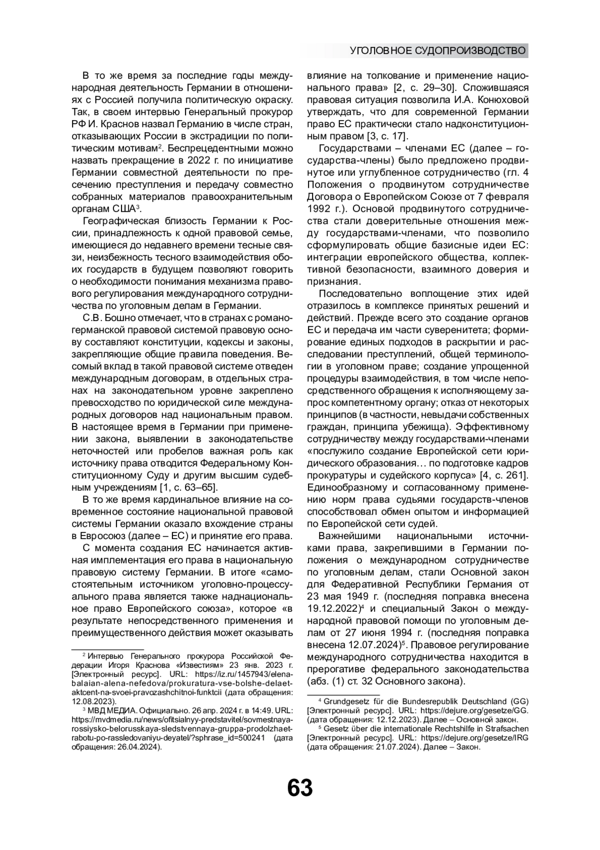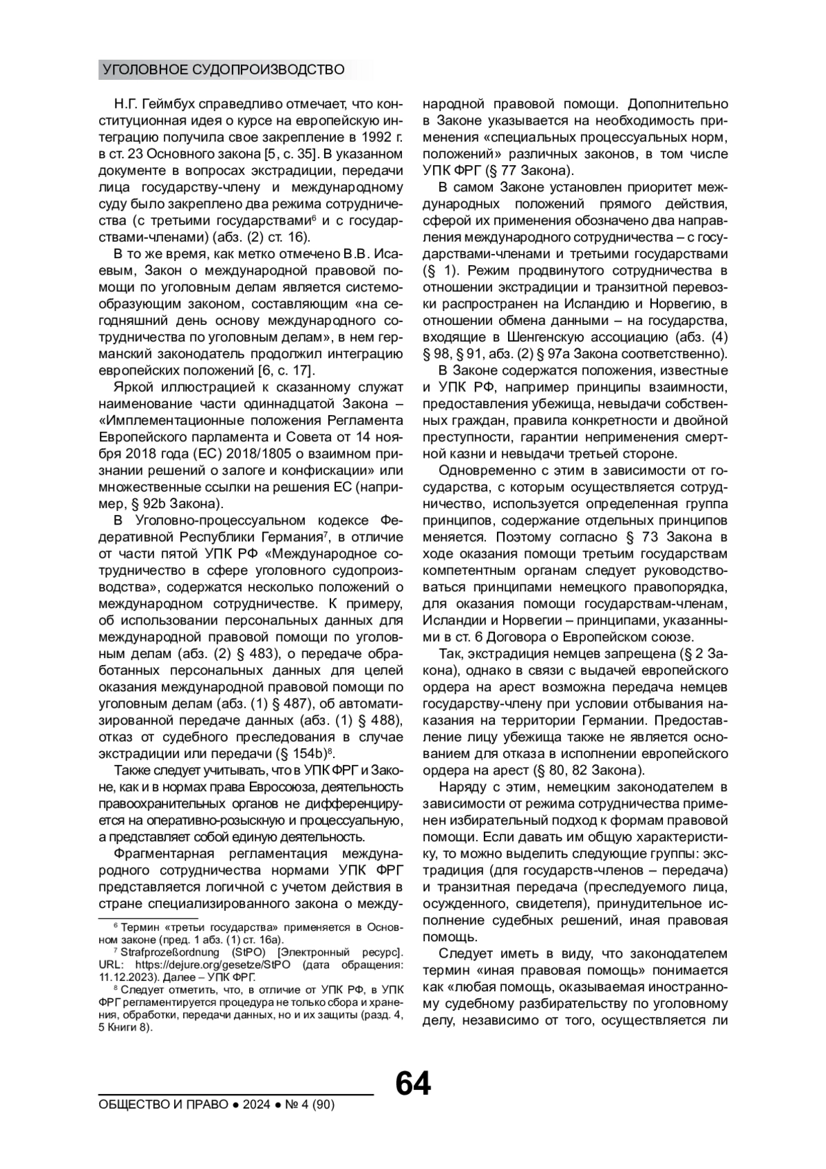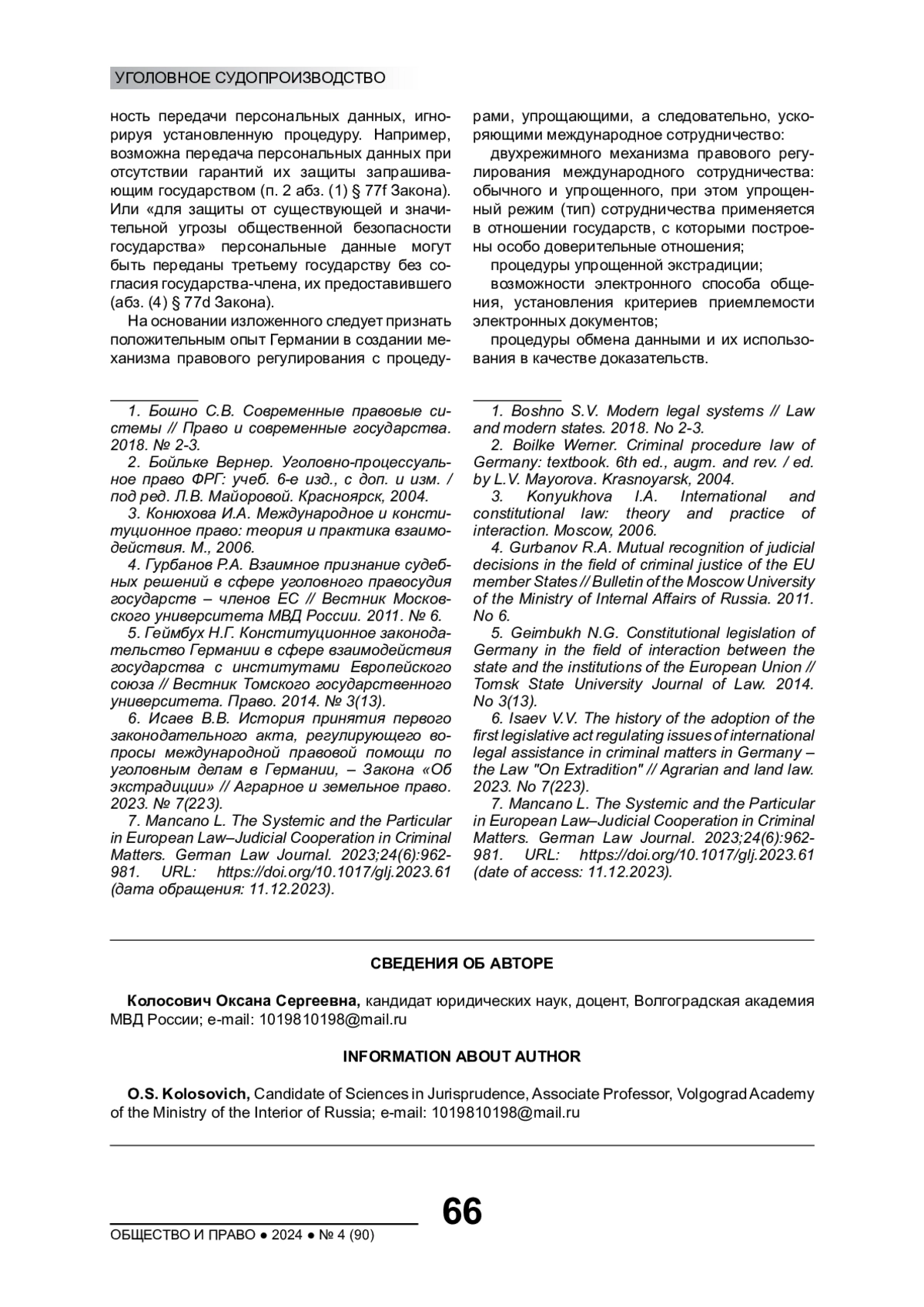6. Исаев В.В. История принятия первого законодательного акта, регулирующего вопросы международной правовой помощи по уголовным делам в Германии, - Закона “Об экстрадиции” // Аграрное и земельное право. 2023. № 7(223).