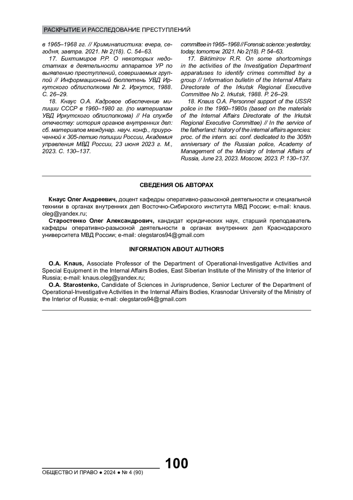 КНАУС О. А., СТАРОСТЕНКО О. А. ФОРМИРОВАНИЕ ОРГАНИЗОВАННОЙ ПРЕСТУПНОСТИ В ИРКУТСКОЙ ОБЛАСТИ // ОБЩЕСТВО И ПРАВО. 2024. № 4 (90)