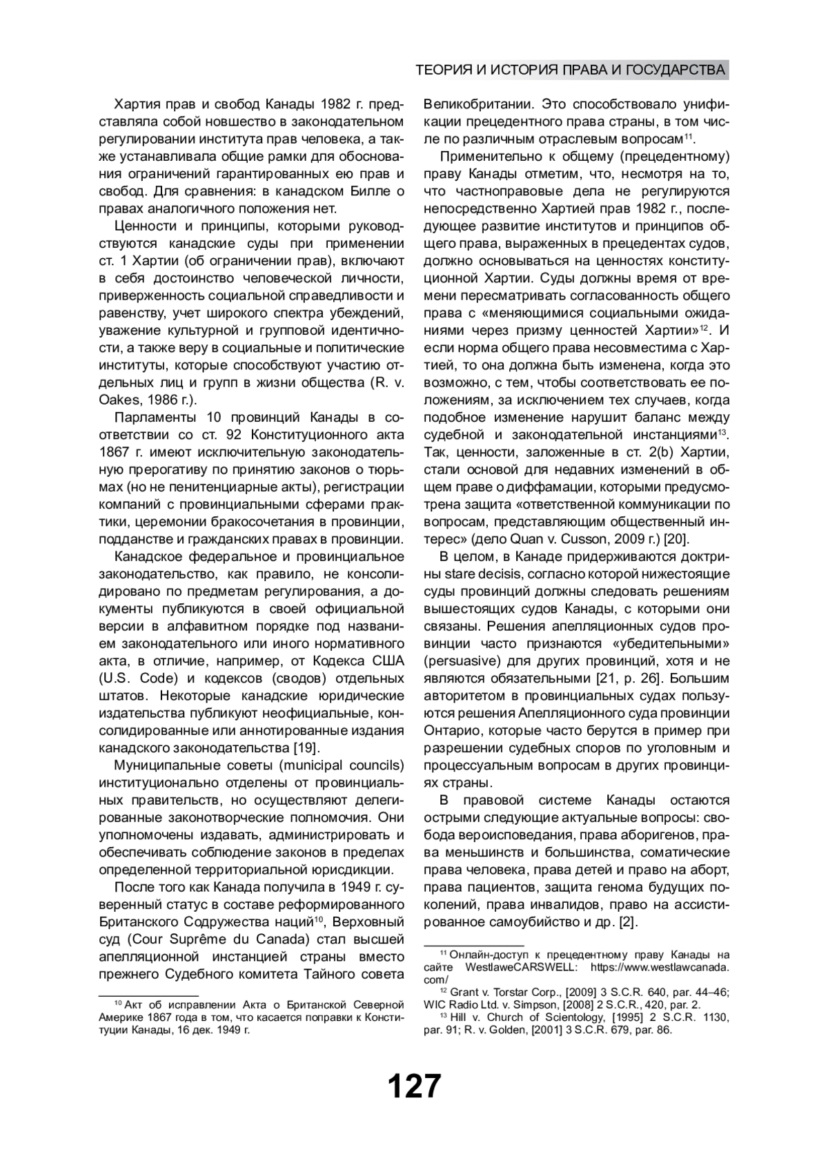 12. Мазуркова Т.В. Конституция и Верховный суд Канады: от апелляционного суда к высшему апелляционному суду // Правовая парадигма. 2017. Т. 16, № 4. С. 144-150. EDN: YSIRPU