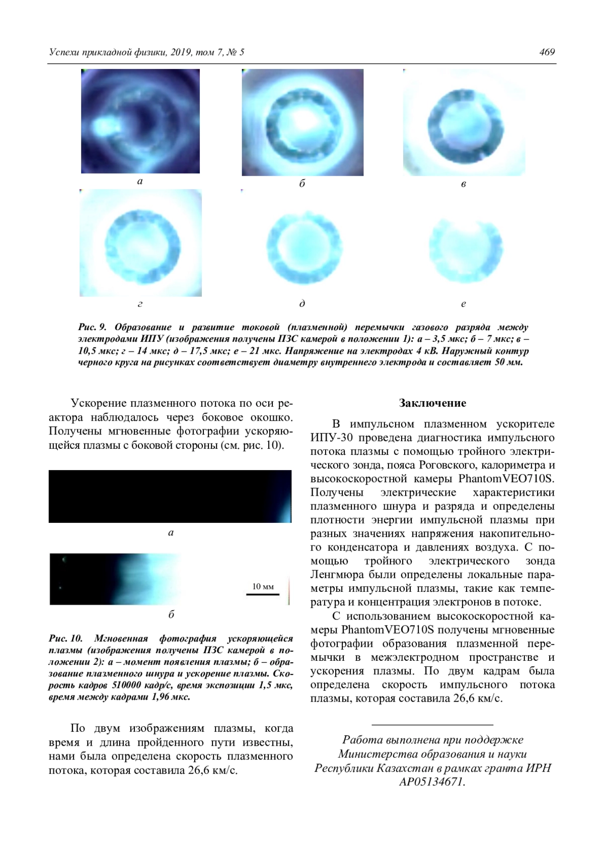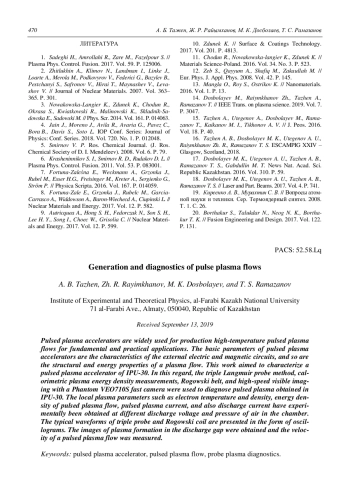 Статья: Получение и диагностика импульсных плазменных потоков (2019)