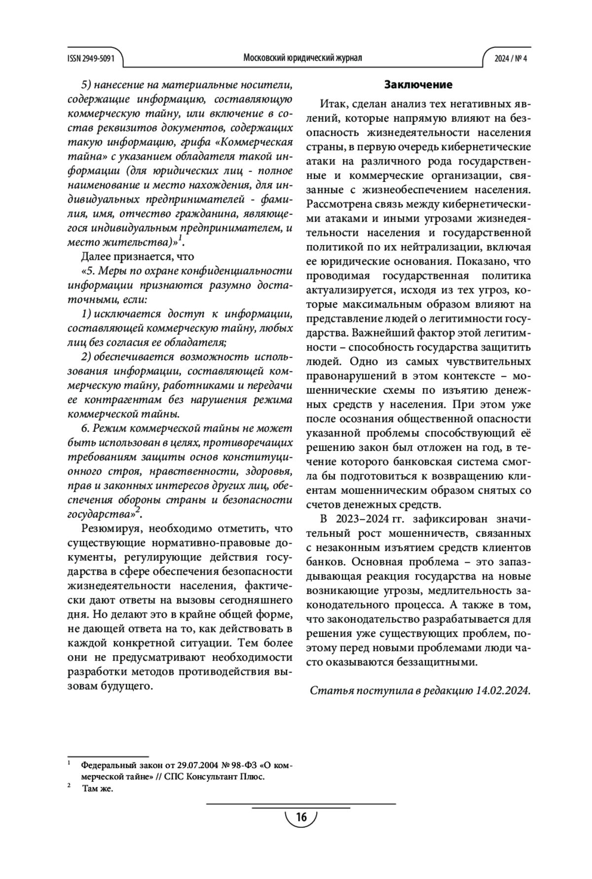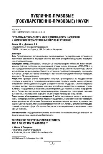 Цель. Проанализировать актуальность мер, предпринимаемых государственными органами для обеспечения безопасности жизнедеятельности населения в современных условиях, и юридические основания этих мер.