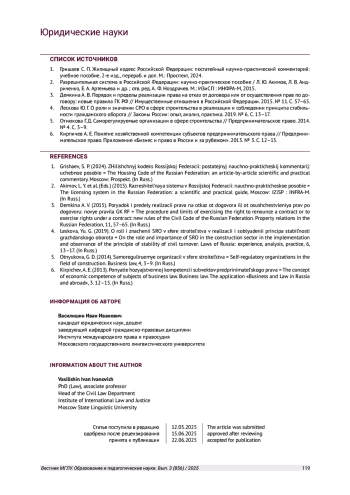 4. Лескова Ю. Г. О роли и значении СРО в сфере строительства в реализации и соблюдении принципа стабильности гражданского оборота // Законы России: опыт, анализ, практика. 2019. № 6. С. 13-17. EDN: PSPBAF
