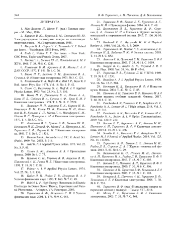 32. Panchenko A. N., Tarasenko V. F., Lomaev M. I., Panchenko N. A., Suslov A. I. // Optics Communications. 2019. Vol. 430. P. 210.