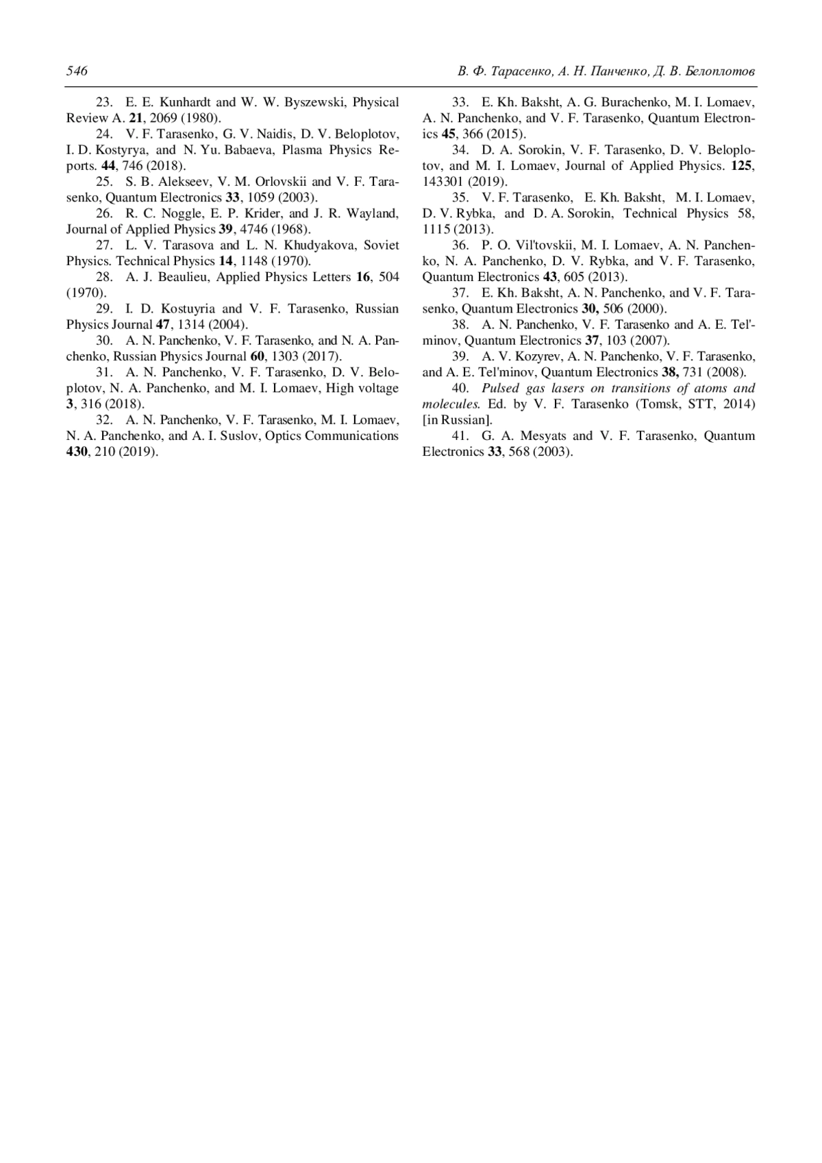 30. Панченко А. Н., Тарасенко В. Ф., Панченко Н. А. // Известия высших учебных заведений. Физика. 2017. Т. 60. № 8. С. 36.