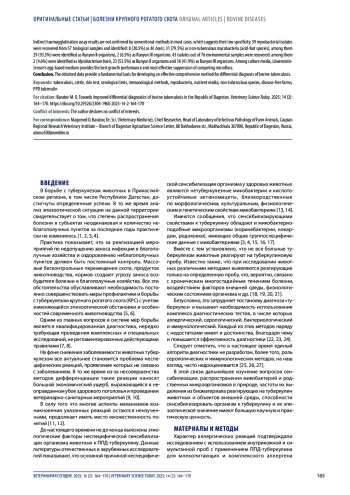 Статья: К совершенствованию дифференциальной диагностики туберкулеза крупного рогатого скота в условиях Республики Дагестан (2025)