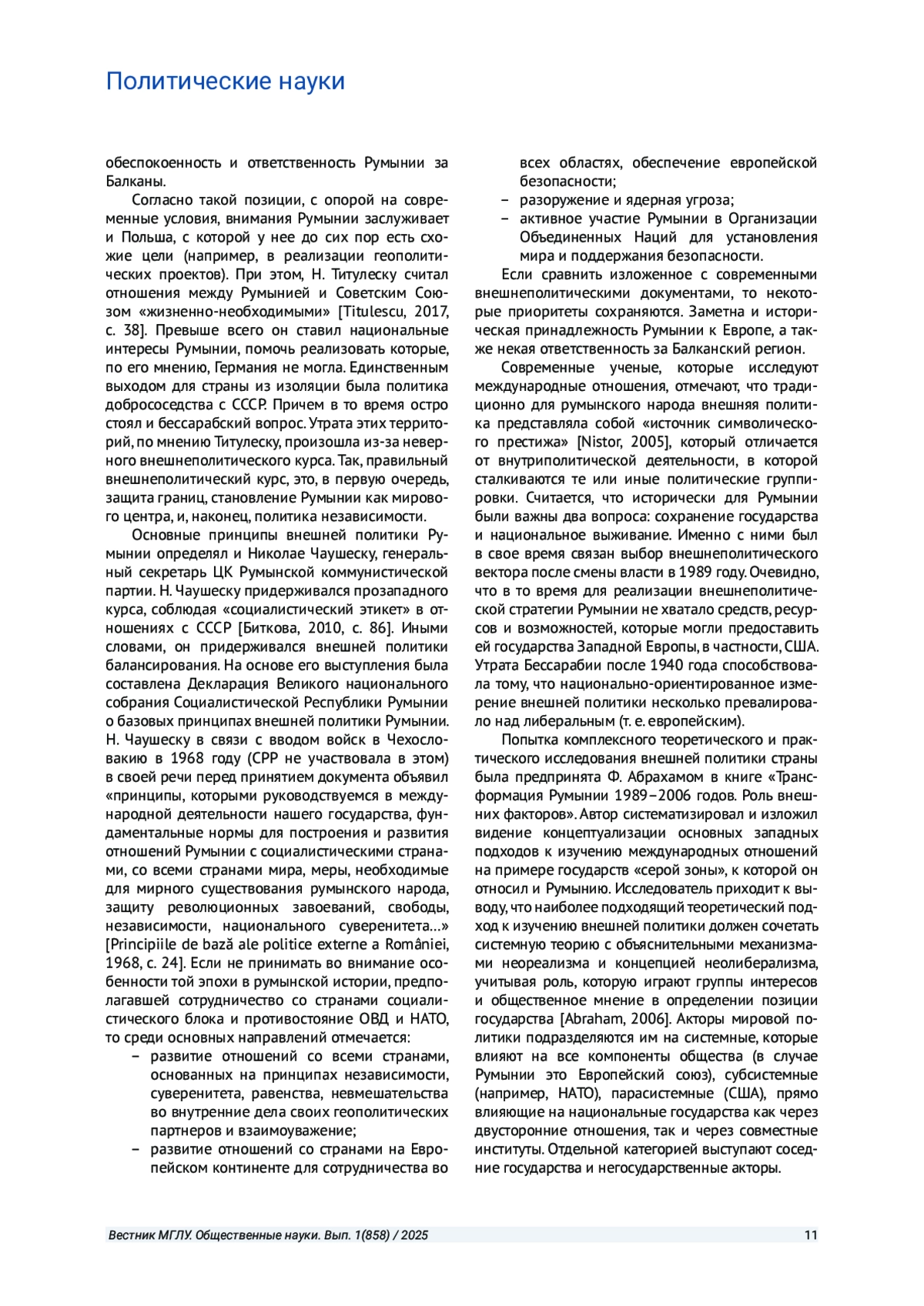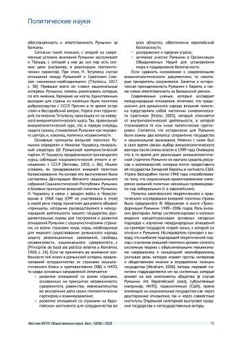 17. Гаврила А. Концептуальные основы внешней политики Румынии (1989-2007) // Вопросы науки и образования. 2017. № 4. С. 45-46. EDN: YUPYAB