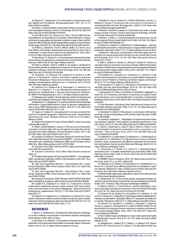 41. Völkel I., Schröer-Merker E., Czerny C.-P. The carry-over of mycotoxins in products of animal origin with special regard to its implications for the European food safety legislation. Food and Nutrition Sciences. 2011; 2 (8): 852-867. DOI: 10.4236/fns.2011.28117