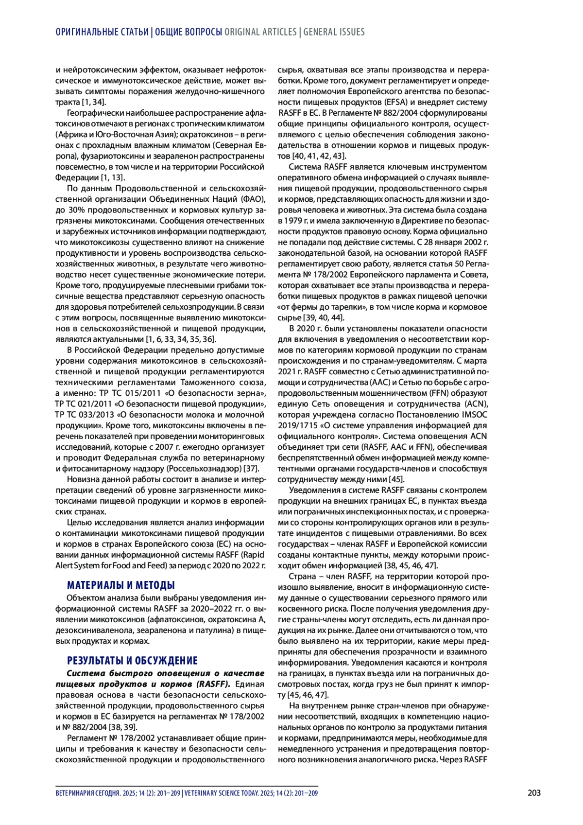 Введение. Микотоксины – вторичные метаболиты плесневых грибов, являются контаминантами, подлежат контролю. Согласно принятой классификации, по требованиям Директивы Совета Европейского союза 96/23ЕС, относятся к группе В3: «Прочие вещества и загрязнители окружающей среды». Информация о выявлении превышения предельно допустимых концентраций в кормах и пищевых продуктах вносится в информационную систему RASFF и ACN, функционирующую на территории стран Европейского союза.