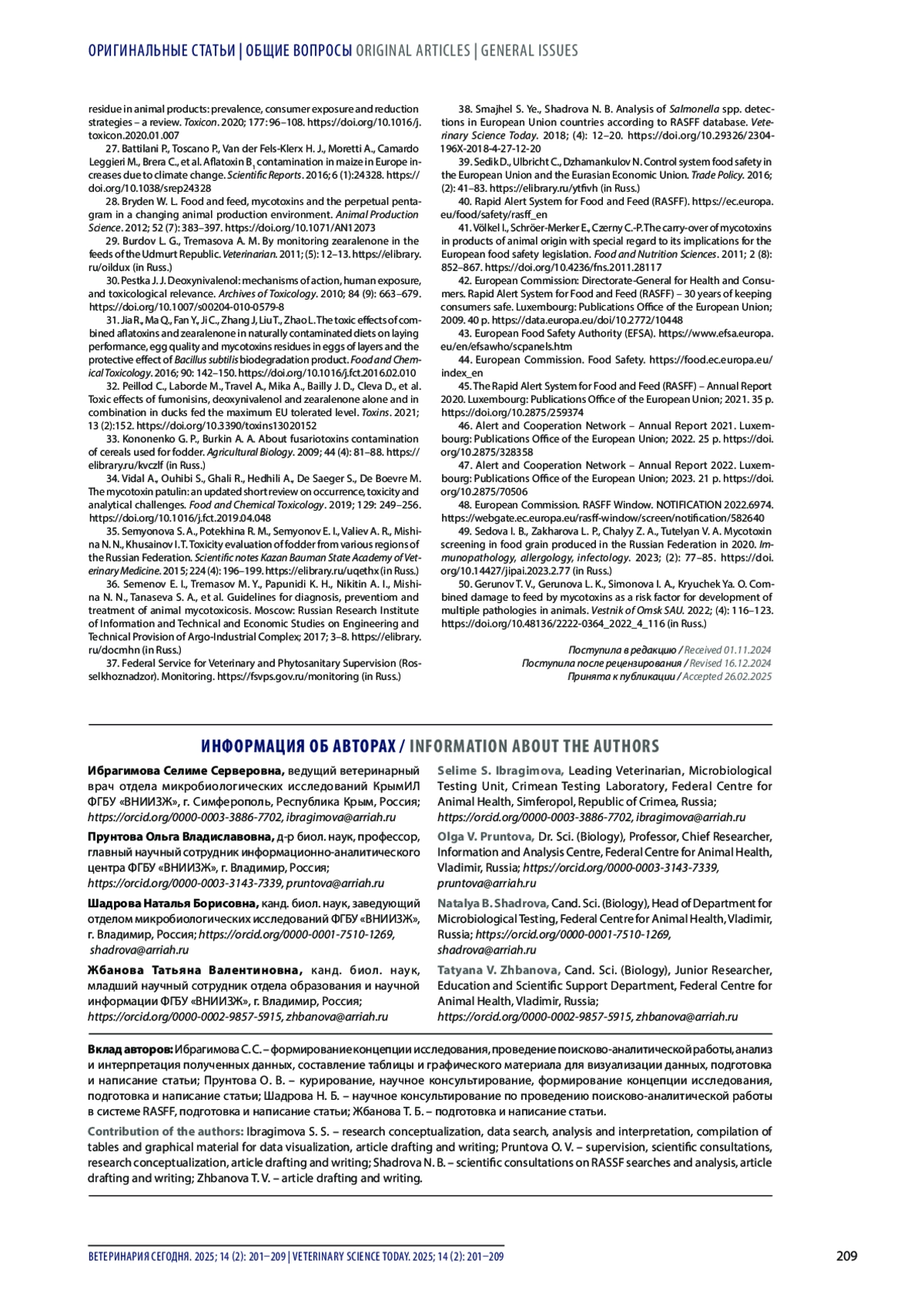 38. Шмайхель С. Е., Шадрова Н. Б. Анализ выявлений бактерий рода Salmonella в странах Европейского союза по данным информационной системы RASFF. Ветеринария сегодня. 2018; (4): 12-20. DOI: 10.29326/2304-196X-2018-4-27-12-20
