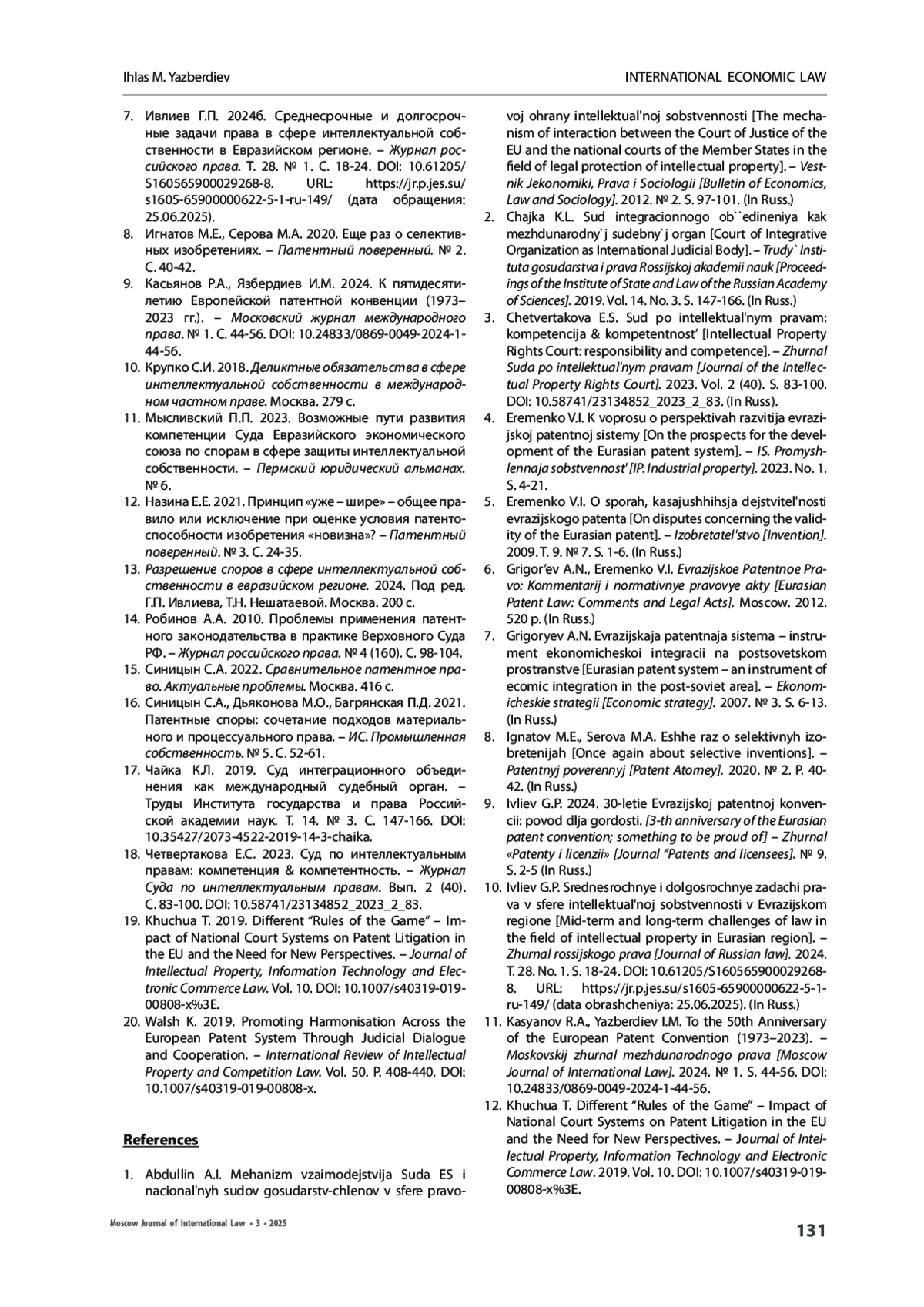 5. Еременко В.И. 2023. К вопросу о перспективах развития евразийской патентной системы. - ИС. Промышленная собственность. № 1. С. 4-21.