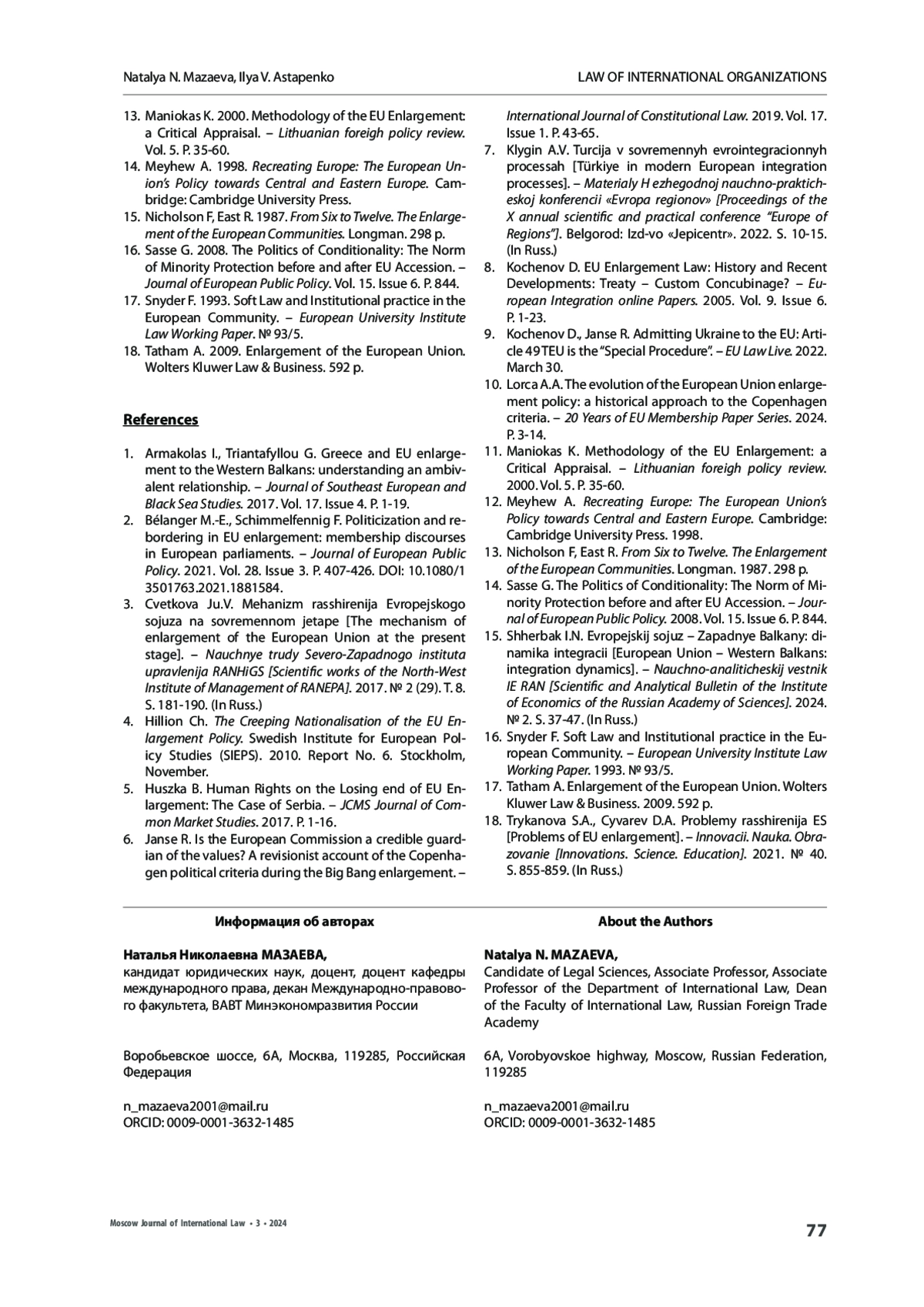 12. Lorca A.A. 2024. The evolution of the European Union enlargement policy: a historical approach to the Copenhagen criteria. - 20 Years of EU Membership Paper Series. P. 3-14.