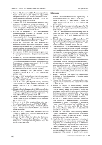 8. Марков А.С., Ромашкина Н.П. 2022. Проблема выявления источника (атрибуции) кибератак - фактор международной безопасности. - Мировая экономика и международные отношения. Т. 66. № 12. С. 58-68. https://doi.org/10.20542/0131-2227-2022-66-12-58-68.