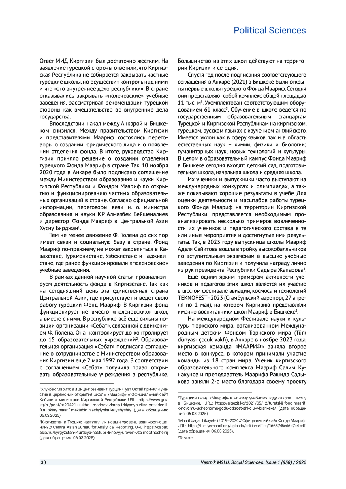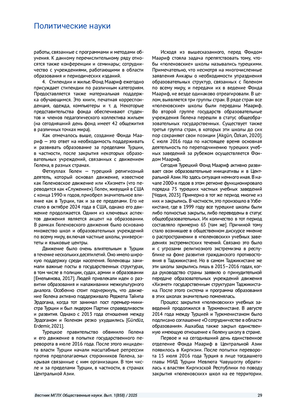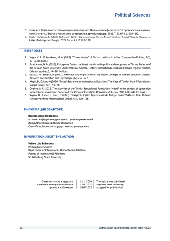 4. Akgün B., Özkan M. Turkey’s Entrance to International Education: The Case of Turkish Maarif Foundation // Insight Turkey. 2020. Vol. 22. # 1. P. 59-70.