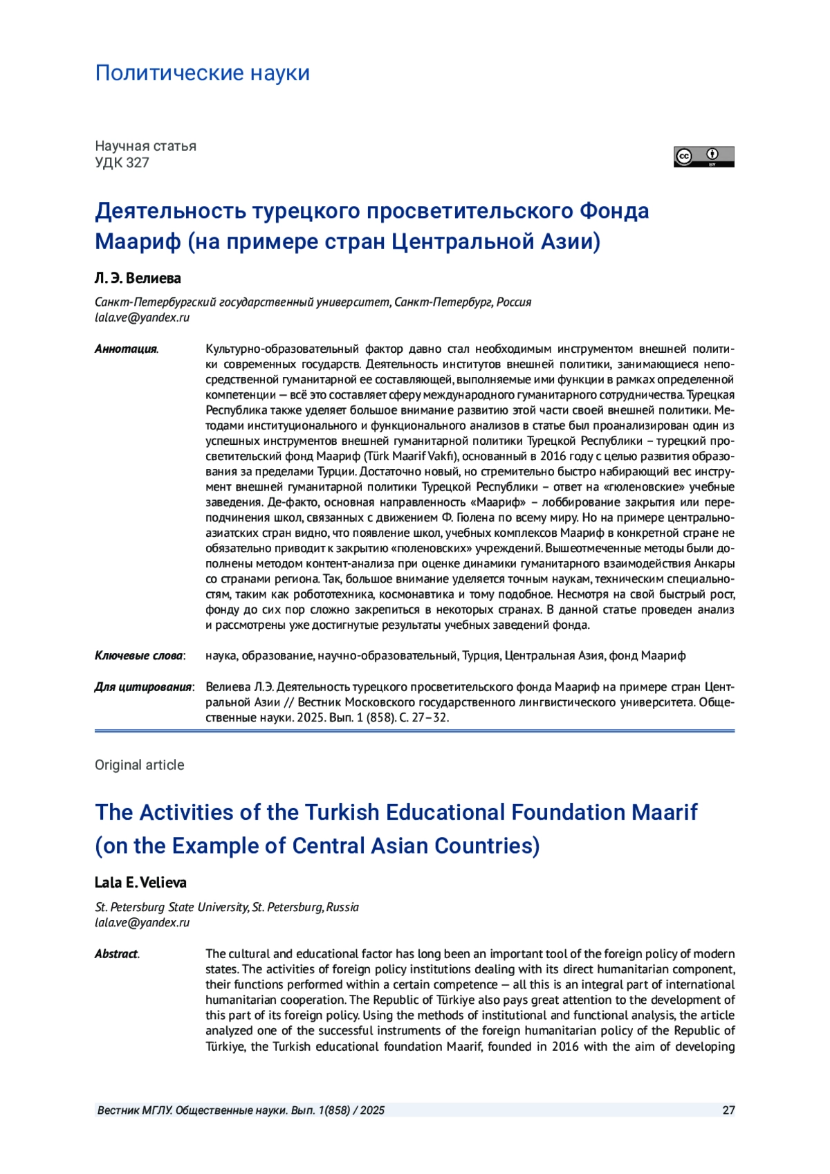 5. Чедия А. Р. Деятельность турецкого просветительского Фонда “Маариф” в контексте противостояния движению “Хизмет” // Вестник Российского университета дружбы народов. 2023. Т. 23. № 4. С. 620-642.