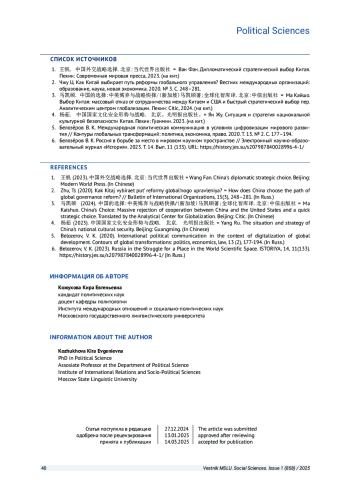 2. Чжу Ц. Как Китай выбирает путь реформы глобального управления? Вестник международных организаций: образование, наука, новая экономика. 2020. № 3. С. 248-281. EDN: DBVLWH