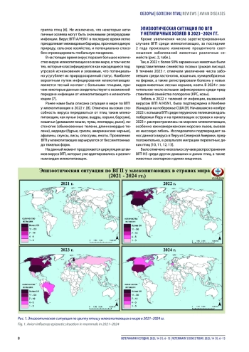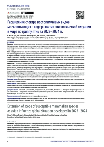 Статья: Расширение спектра восприимчивых видов млекопитающих в ходе развития эпизоотической ситуации в мире по гриппу птиц за 2023–2024 гг. (2025)