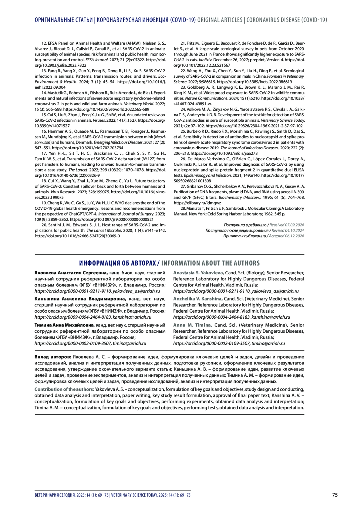 13. Fang R., Yang X., Guo Y., Peng B., Dong R., Li S., Xu S. SARS-CoV-2 infection in animals: Patterns, transmission routes, and drivers. Eco-Environment & Health. 2024; 3 (1): 45-54. DOI: 10.1016/j.eehl.2023.09.004