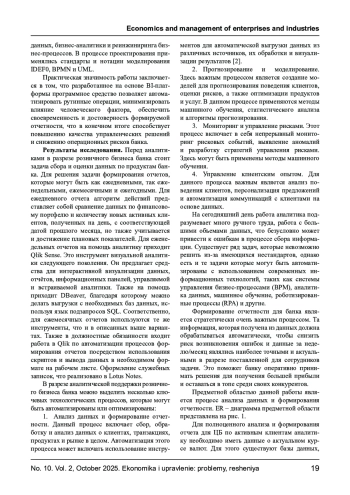 Статья посвящена анализу трансформации бизнес-моделей под воздействием технологий больших данных в современной экономике. Рассматриваются теоретико-методологические основы применения больших данных, их влияние на стратегическое управление предприятиями и институциональные ограничения цифровой модернизации. Особое внимание уделено вопросам адаптации традиционных моделей бизнеса к новым технологическим условиям и выявлению рисков цифровизации. В табличном виде обобщены количественные показатели, иллюстрирующие влияние внедрения технологий больших данных на трансформацию бизнес-моделей российских компаний. Внедрение технологий больших данных характеризует положительный эффект ключевых параметров бизнес-моделей российских компаний: ускорение процессов, рост доходности и увеличение доли новых продуктов в выручке. На основании анализа отечественных исследований выявлены ключевые направления изменений, включая повышение гибкости бизнес-процессов, интеграцию аналитических инструментов и усиление клиентоориентированности.