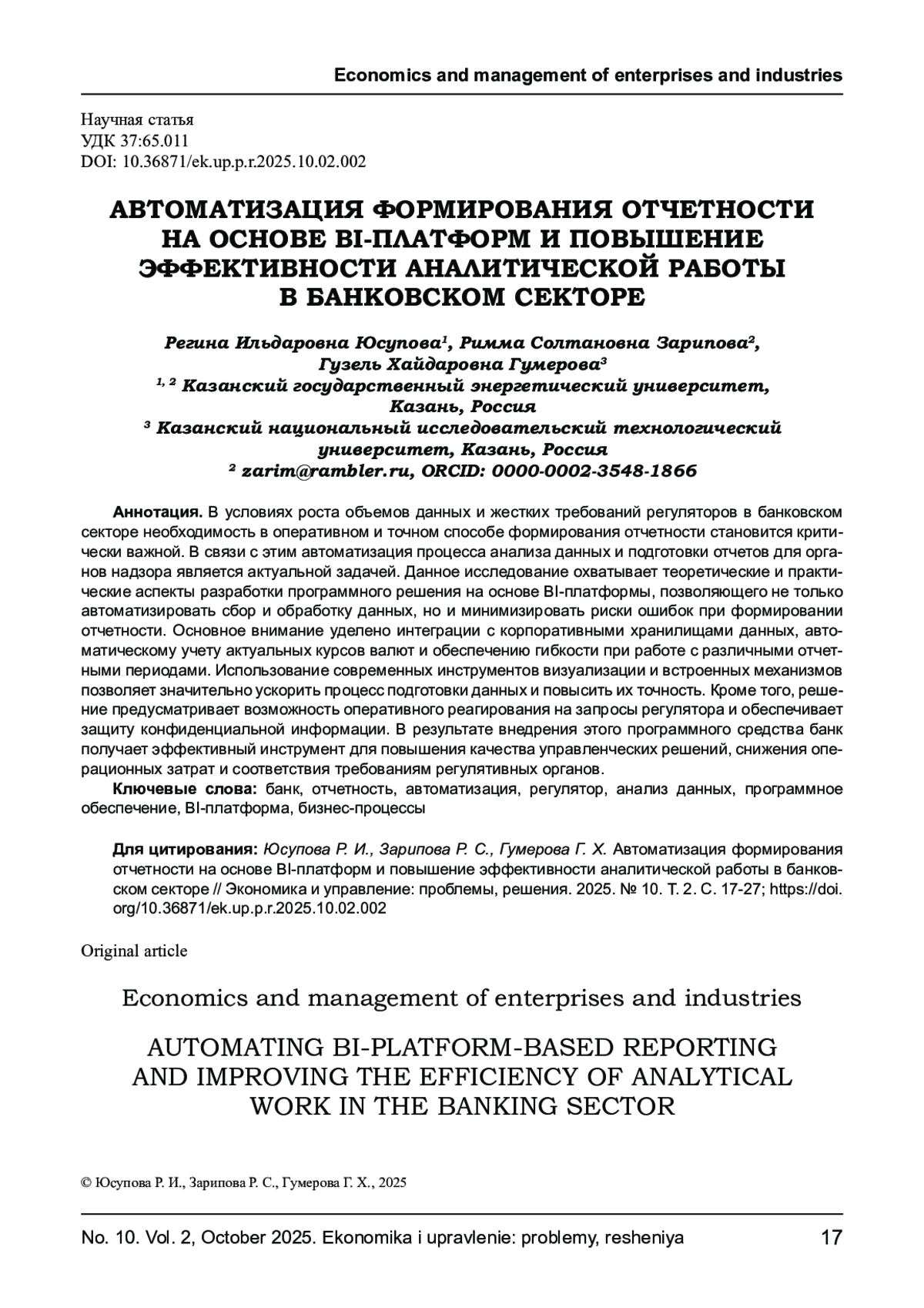 2. Зарипова К. И., Зарипова Р. С. Анализ производственных процессов в деятельности коммерческого банка и определение возможности их автоматизации // Экономика и управление: проблемы, решения. 2024. Т. 11, № 10(151). С. 12-20. EDN: QFSZLE