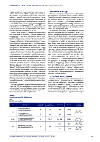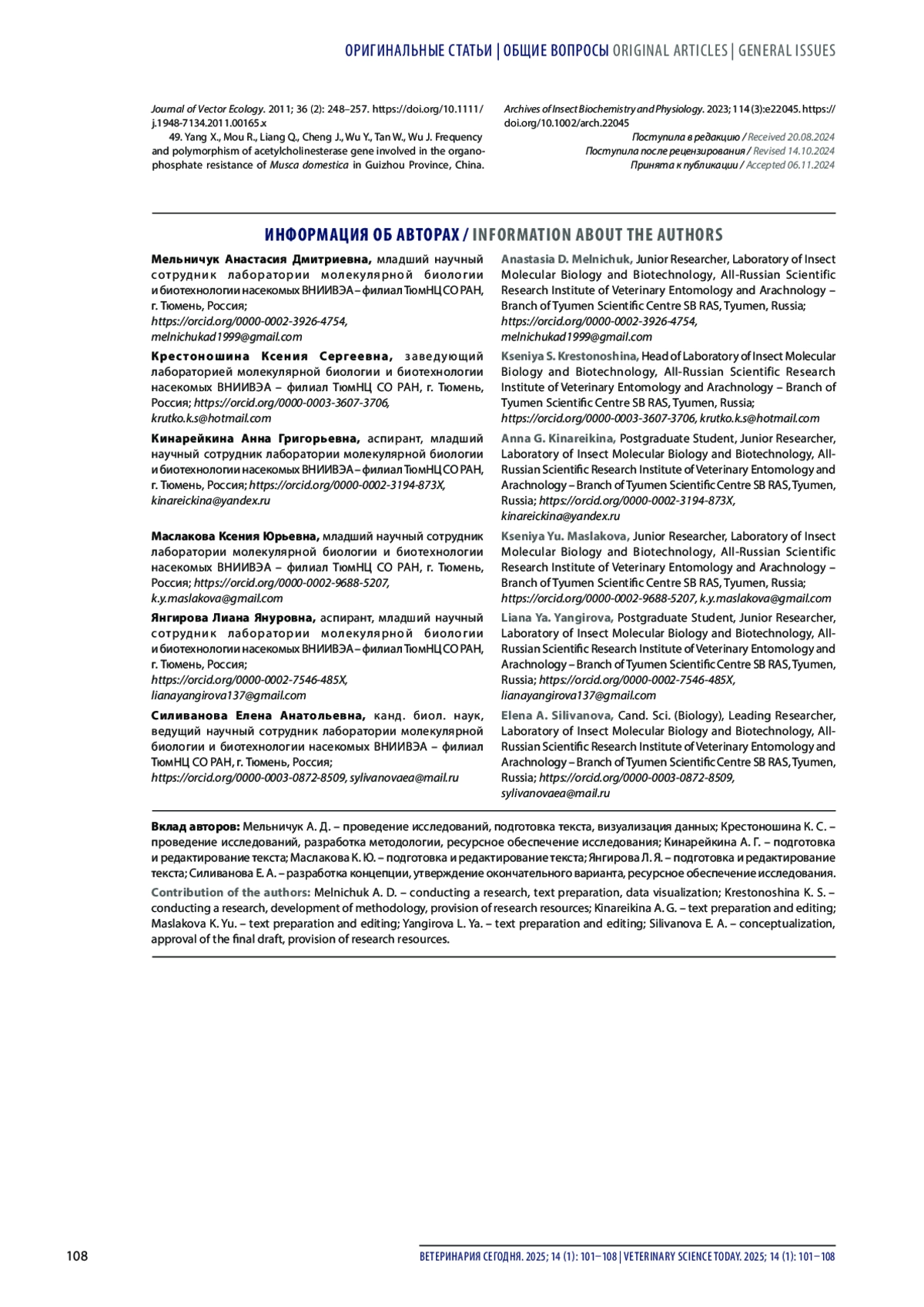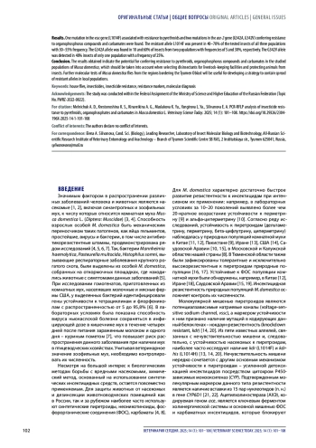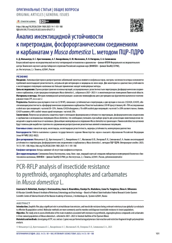 Статья: Анализ инсектицидной устойчивости к пиретроидам, фосфорорганическим соединениям и карбаматам у Musca domestica L. методом ПЦР-ПДРФ (2025)