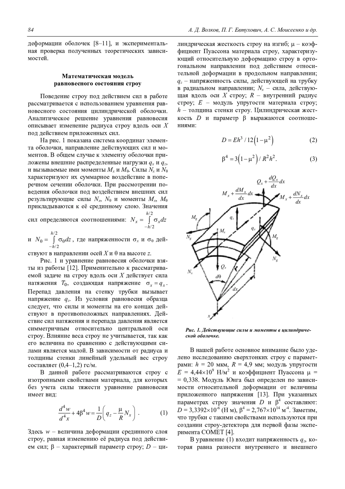 Статья: Влияние внутреннего давления на натяжение в сварных строу трекового детектора (2018)