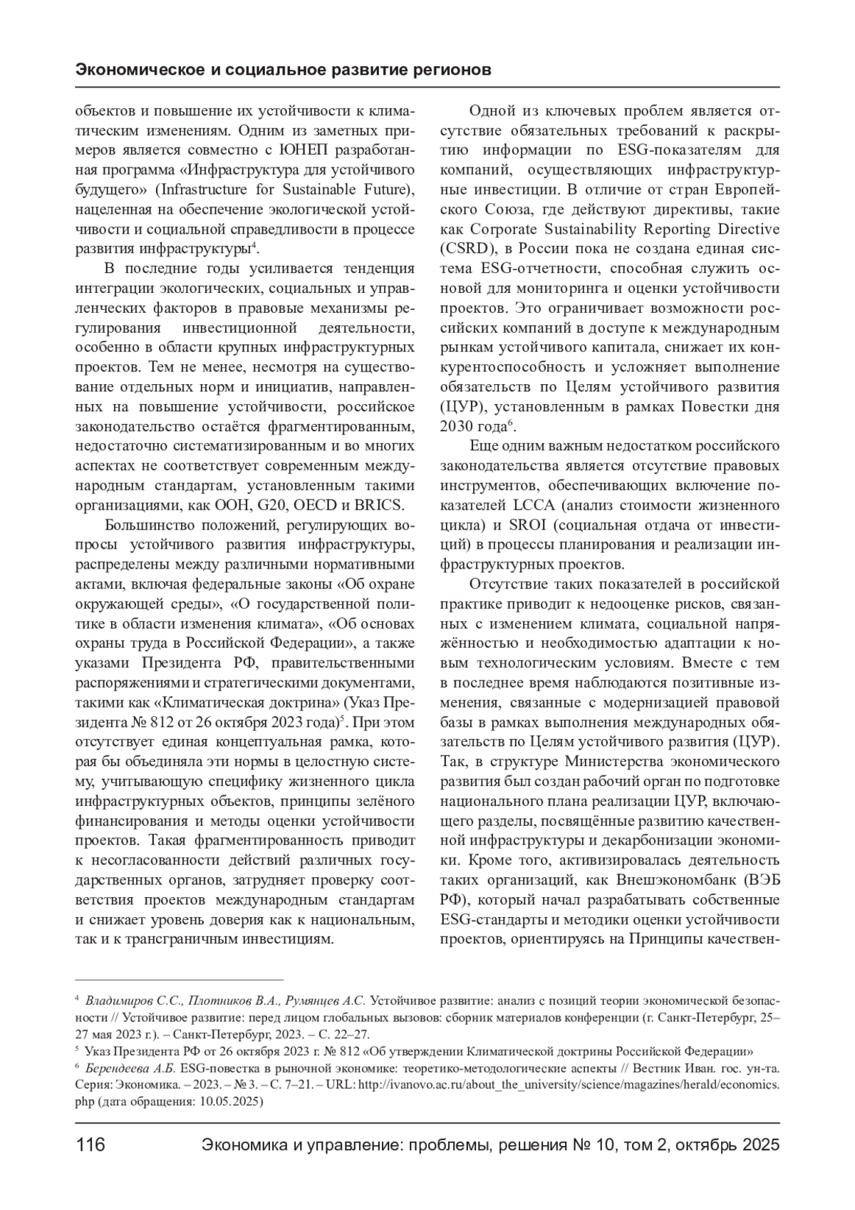 ИВАНОВ И. С. РЕАЛИЗАЦИЯ ЦЕЛЕЙ УСТОЙЧИВОГО РАЗВИТИЯ В РОССИЙСКОЙ ФЕДЕРАЦИИ: ВЫЗОВЫ И РЕКОМЕНДАЦИИ // ЭКОНОМИКА И УПРАВЛЕНИЕ: ПРОБЛЕМЫ, РЕШЕНИЯ. 2025. ТОМ 2 № 10
