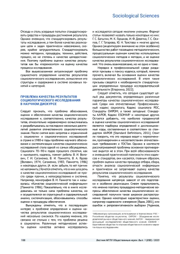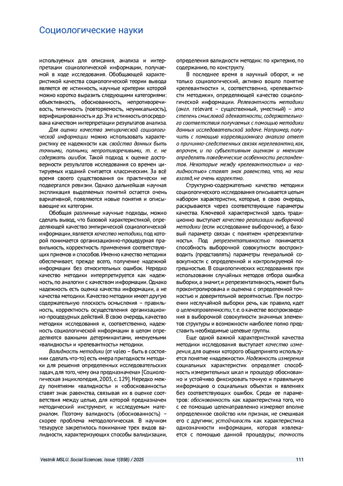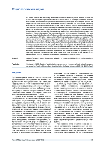 Статья: КАЧЕСТВО РЕЗУЛЬТАТОВ СОЦИОЛОГИЧЕСКОГО ИССЛЕДОВАНИЯ В СИСТЕМЕ ОСНОВНЫХ НАУЧНЫХ ПОНЯТИЙ И КАТЕГОРИЙ (2025)