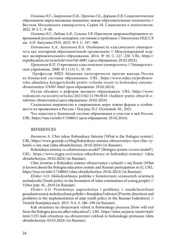 15. Профессор ВШЭ Абанкина категорически против выхода России из болонской системы образования. URL: https://www.ridus.ru/professor-vshe-abankina-kategoricheski-protiv-vyhoda-rossii-iz-bolonskoj-sistemy-obrazovaniya-376307.html (дата обращения: 29.02.2024).