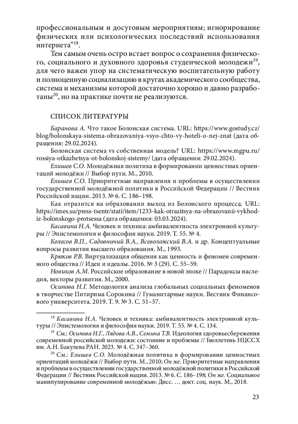 6. Касавина Н.А. Человек и техника: амбивалентность электронной культуры // Эпистемология и философия науки. 2019. Т. 55. № 4.