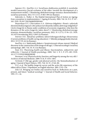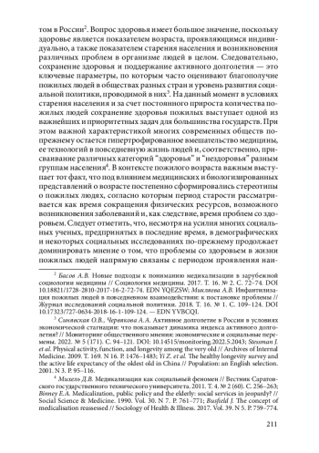 ГАЛКИН К. А. ВЛИЯНИЕ МЕДИКАЛИЗАЦИИ ВОЗРАСТА НА ПРЕДСТАВЛЕНИЯ ОБ ИНДИВИДУАЛЬНОМ ЗДОРОВЬЕ И СТАРЕНИИ У ПОЖИЛЫХ ЛЮДЕЙ // ВЕСТНИК МОСКОВСКОГО УНИВЕРСИТЕТА. СЕРИЯ 18. СОЦИОЛОГИЯ И ПОЛИТОЛОГИЯ. 2024. ТОМ 30 № 2