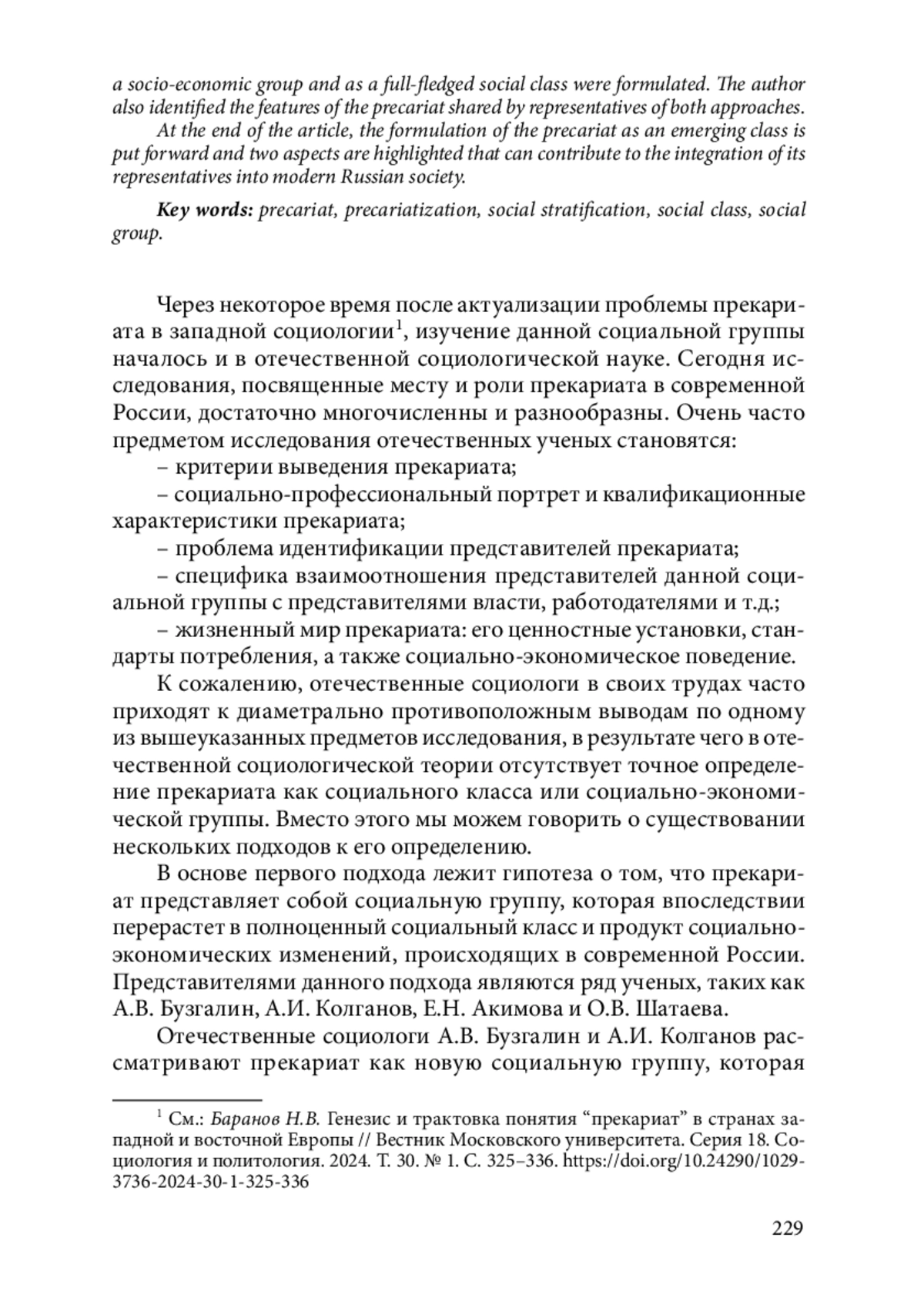 3. Баранов Н.В. Генезис и трактовка понятия “прекариат” в странах западной и во-сточной Европы // Вестник Московского университета. Серия 18. Социология и политология. 2024. Т. 30. № 1. С. 325-336. https://doi.org/10.24290/1029-3736-2024-30-1-325-336