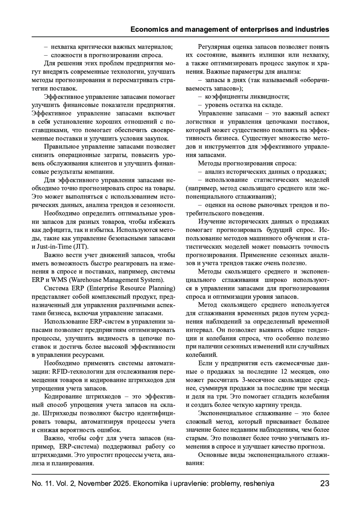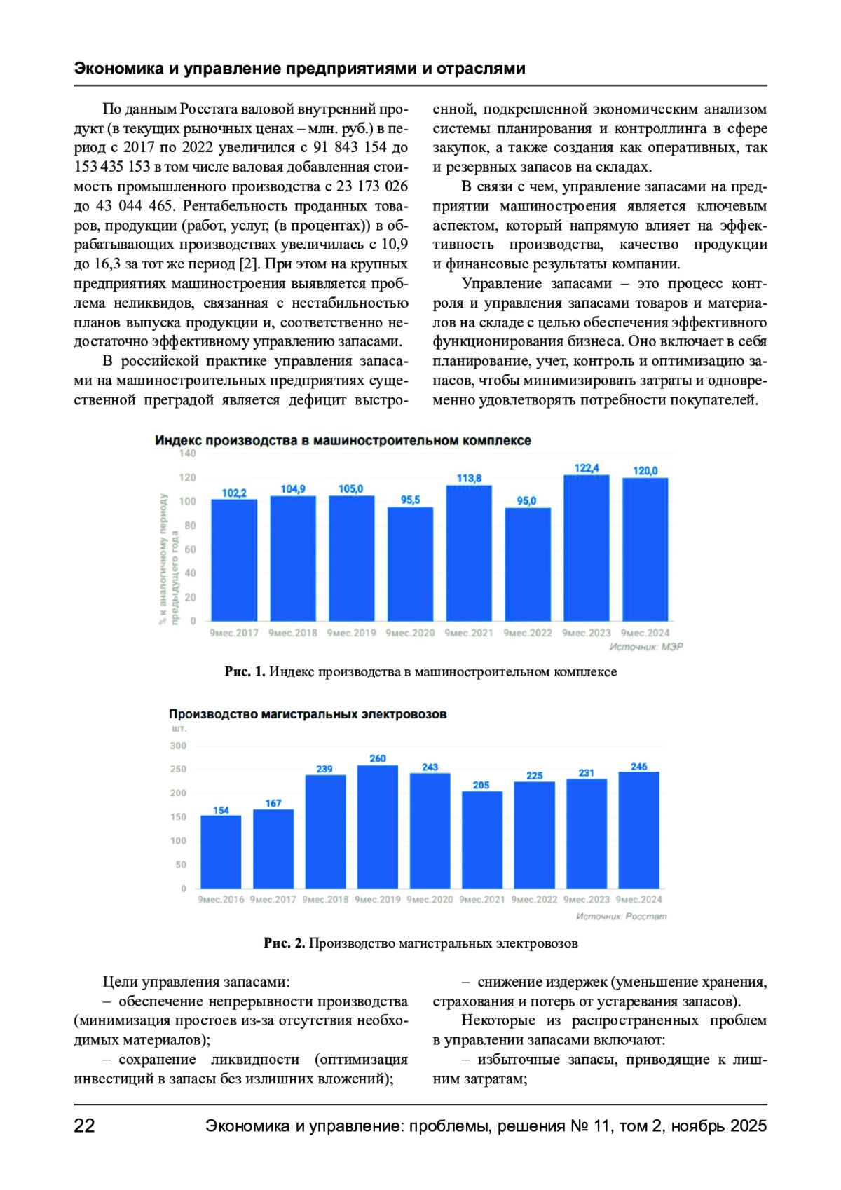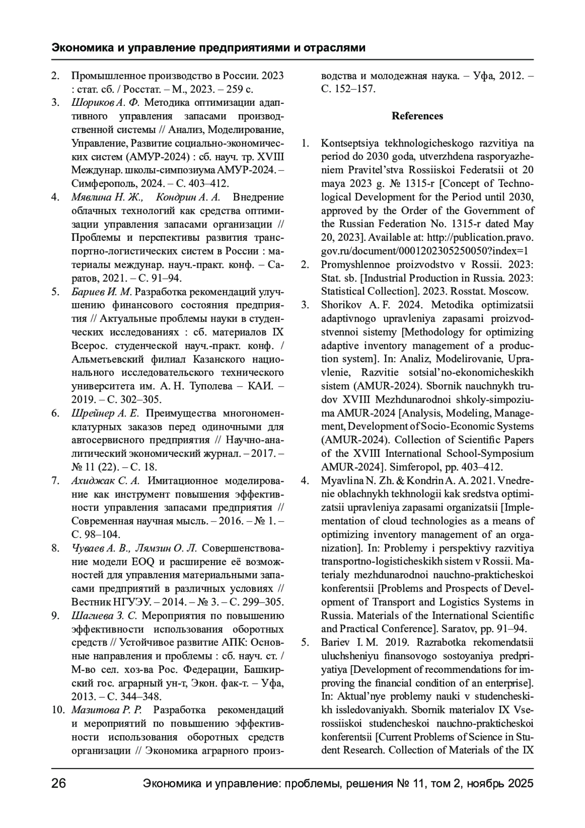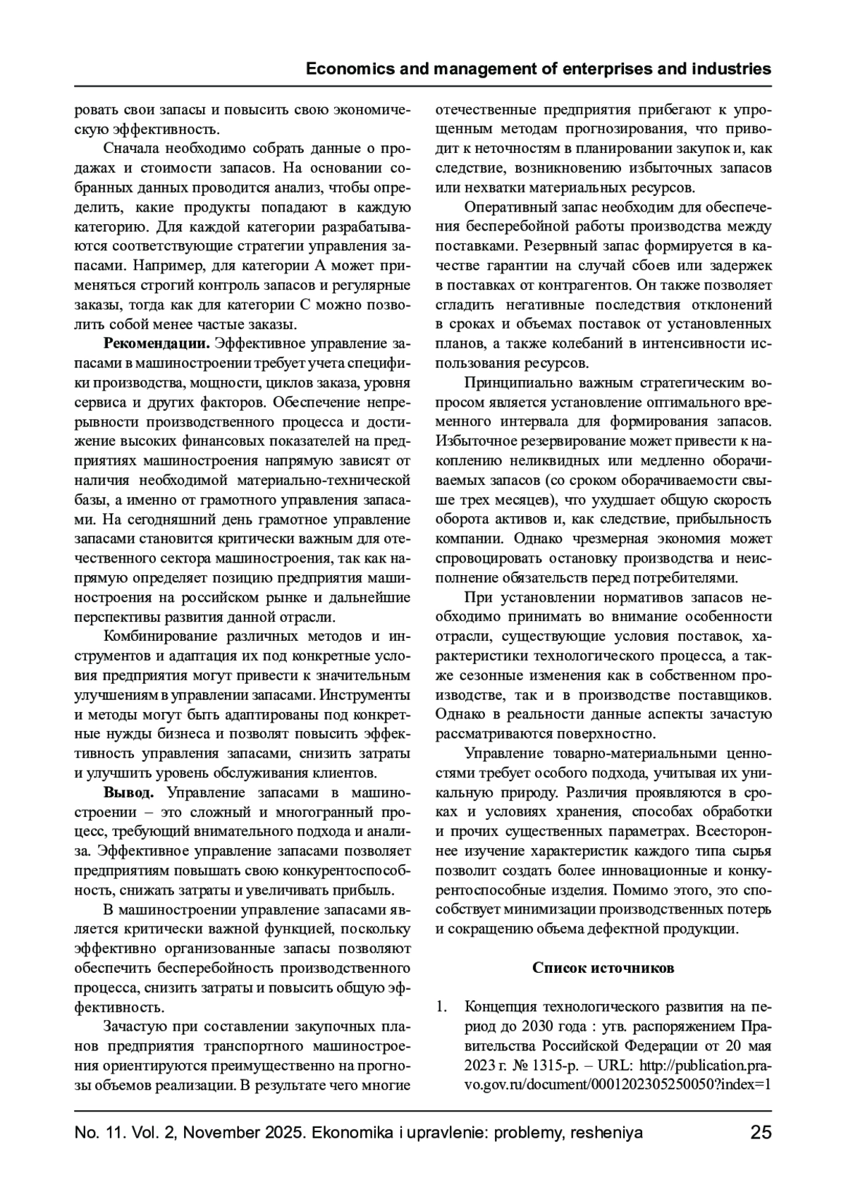 Статья: УПРАВЛЕНИЕ ЗАПАСАМИ ПРЕДПРИЯТИЙ ТРАНСПОРТНОГО МАШИНОСТРОЕНИЯ (2025)