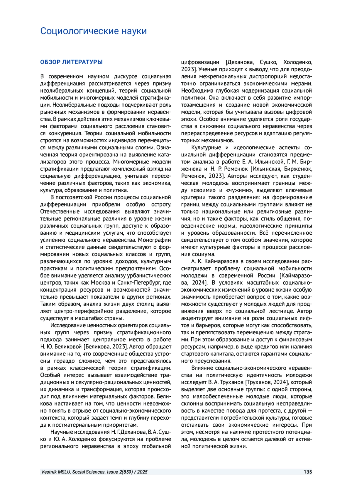 2. Деханова Н. Г., Сушко В. А., Холоденко Ю. А. Детерминанты социального неравенства российских регионов в условиях глобальной цифровой трансформации // Теория и практика общественного развития. 2023. № 4 (182). С. 25-31. EDN: OGXEOR