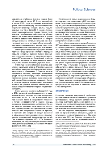 Статья: СОВРЕМЕННЫЕ КИТАЙСКО-ГЕРМАНСКИЕ ОТНОШЕНИЯ КАК ОТРАЖЕНИЕ КРИЗИСА ТРАНСАТЛАНТИЧЕСКОГО ЕДИНСТВА В ПРОТИВОСТОЯНИИ СТРАН ЗАПАДА И КНР (2025)
