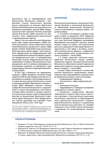 1. Онищенко Г. Г. [и др.]. Концептуальные основы биологической безопасности. Часть I // Вестник Российской академии медицинских наук. 2013. Т. 68. № 10. С. 4-13. EDN: REWYUH