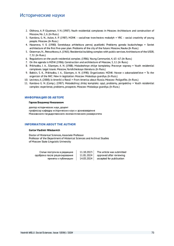 2. Ольхова А. П., Глятман Я. Н. Молодежные жилые комплексы в Москве // Архитектура и строительство Москвы. 1987. № 2. С. 6.