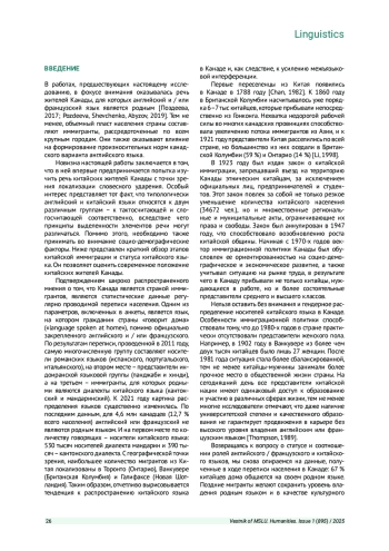 В работах, предшествующих настоящему исследованию, в фокусе внимания оказывалась речь жителей Канады, для которых английский и / или французский язык является родным [Поздеева, 2017; Pozdeeva, Shevchenko, Abyzov, 2019]. Тем не менее, объемный пласт населения страны составляют иммигранты, рассредоточенные по всем крупным городам. Они также оказывают влияние на формирование произносительных норм канадского варианта английского языка.