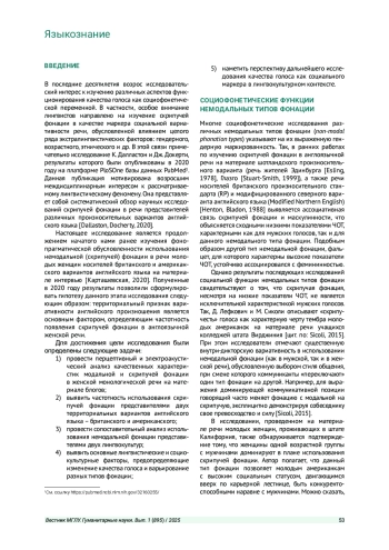 Статья: КАЧЕСТВО ГОЛОСА КАК СОЦИОФОНЕТИЧЕСКАЯ ПЕРЕМЕННАЯ В БРИТАНСКОМ И АМЕРИКАНСКОМ ЛИНГВОКУЛЬТУРНОМ КОНТЕКСТЕ (2025)