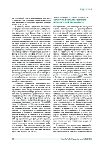 Ключевые фразы: качество голоса, скрипучая фонация, модальная фонация, фальцет, ГЕНДЕР, КОНВЕРГЕНЦИЯ, частота основного тона, джиттер-эффект, шиммер-эффект, соотношение гармоники и шума
