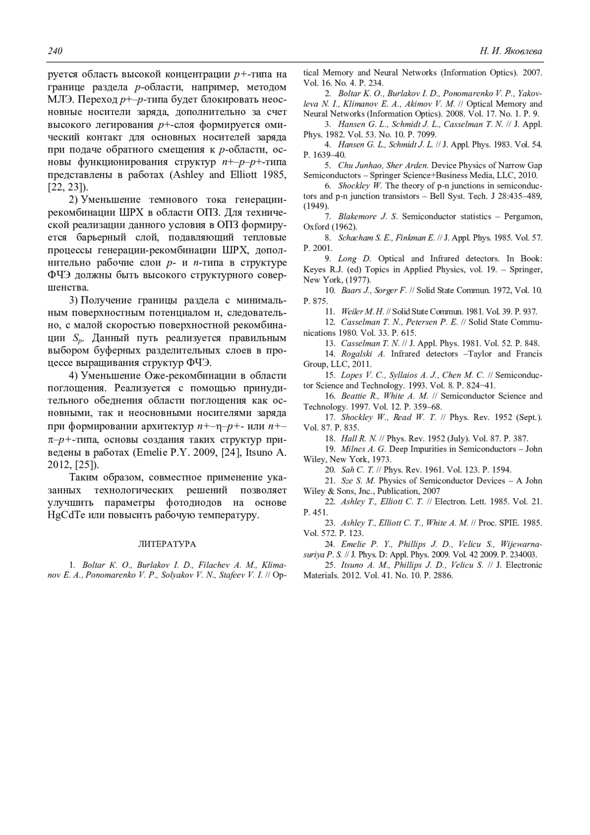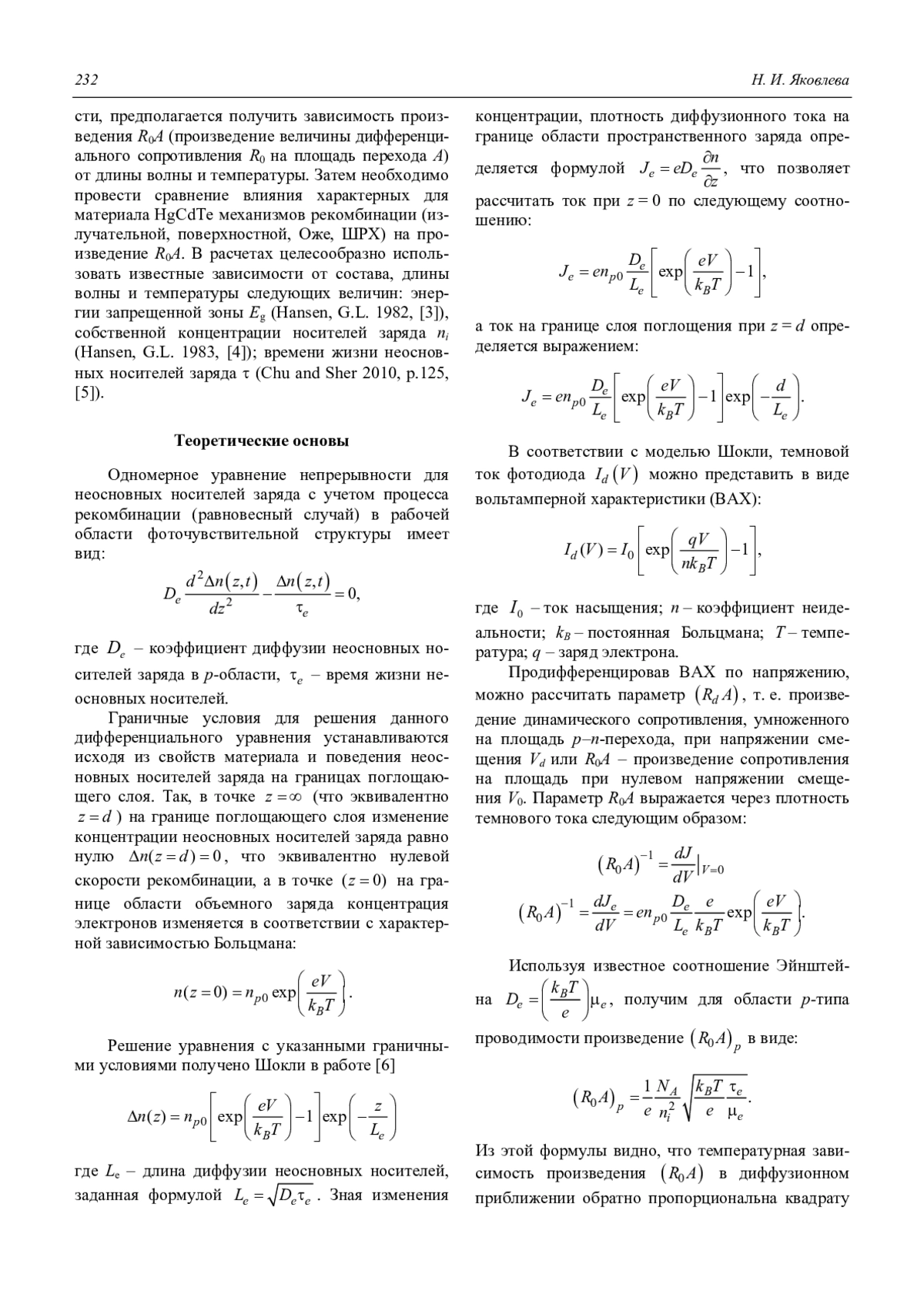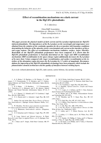 ЯКОВЛЕВА Н. И. ВЛИЯНИЕ МЕХАНИЗМОВ ГЕНЕРАЦИИ-РЕКОМБИНАЦИИ НЕОСНОВНЫХ НОСИТЕЛЕЙ ЗАРЯДА НА ТЕМНОВОЙ ТОК ФОТОДИОДОВ НА ОСНОВЕ HGCDTE // УСПЕХИ ПРИКЛАДНОЙ ФИЗИКИ. 2018. ТОМ 6, №3