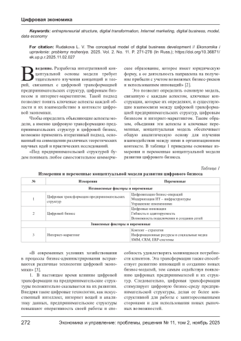 Разработка интегративной концептуальной основы модели требует тщательного изучения концепций и теорий, связанных с цифровой трансформацией предпринимательских структур, цифровым бизнесом и интернет-маркетингом.