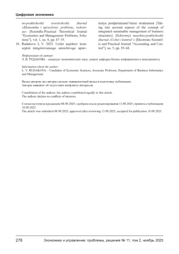10. Рудакова Л. В. Учет аспектов концепции интегрированного устойчивого управления предпринимательскими структурами // Учет и контроль. - 2025. - № 5. - С. 59-68. EDN: RGVWBT