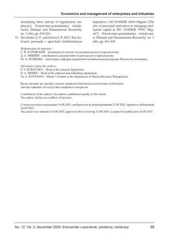 14. Савченко А. П. Гроссу И. П. Роль мотивации персонала в управлении интеллектуальным капиталом в АО ТАНДЕР «ПАО Магнит» // Естественно-гуманитарные исследования. - 2023. - № 2 (46). - С. 441-445.