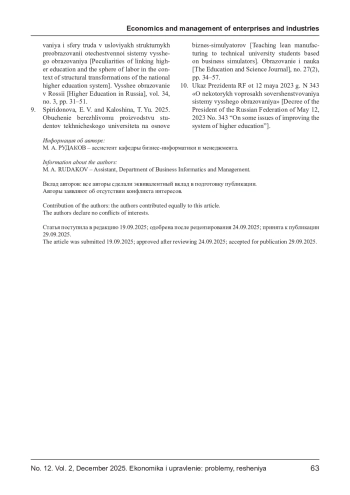 Журнал: ЭКОНОМИКА И УПРАВЛЕНИЕ: ПРОБЛЕМЫ, РЕШЕНИЯ
