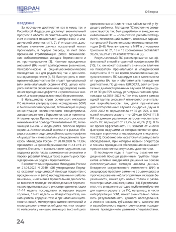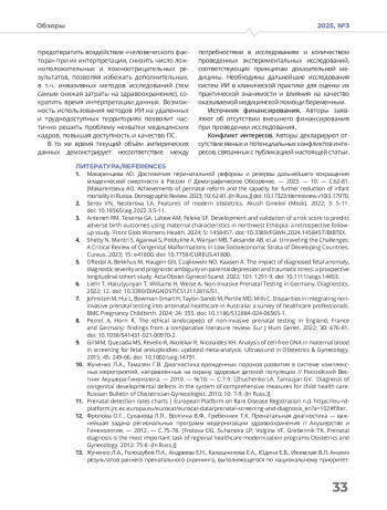 За последние десятилетия как в мире, так и Российской Федерации достигнут значительный прогресс в области перинатального здоровья за счет снижения показателей материнской и младенческой смертности [1, 2]. Учитывая это, дальнейшее снижение данных показателей может происходить, в первую очередь, за счет своевременной стратификации риска возникновения неблагоприятных исходов беременности и их прогнозирования [3]. Наличие врожденных аномалий (ВА) имеет долгосрочные физические, психологические и социально-экономические последствия как для родителей, так и для системы здравоохранения [4, 5].