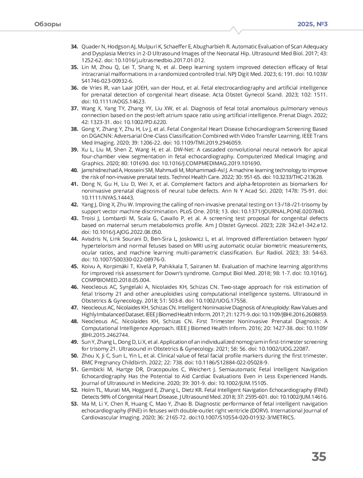35. Lin M, Zhou Q, Lei T, Shang N, et al. Deep learning system improved detection efficacy of fetal intracranial malformations in a randomized controlled trial. NPJ Digit Med. 2023; 6: 191. DOI: 10.1038/S41746-023-00932-6 EDN: OXFNWS